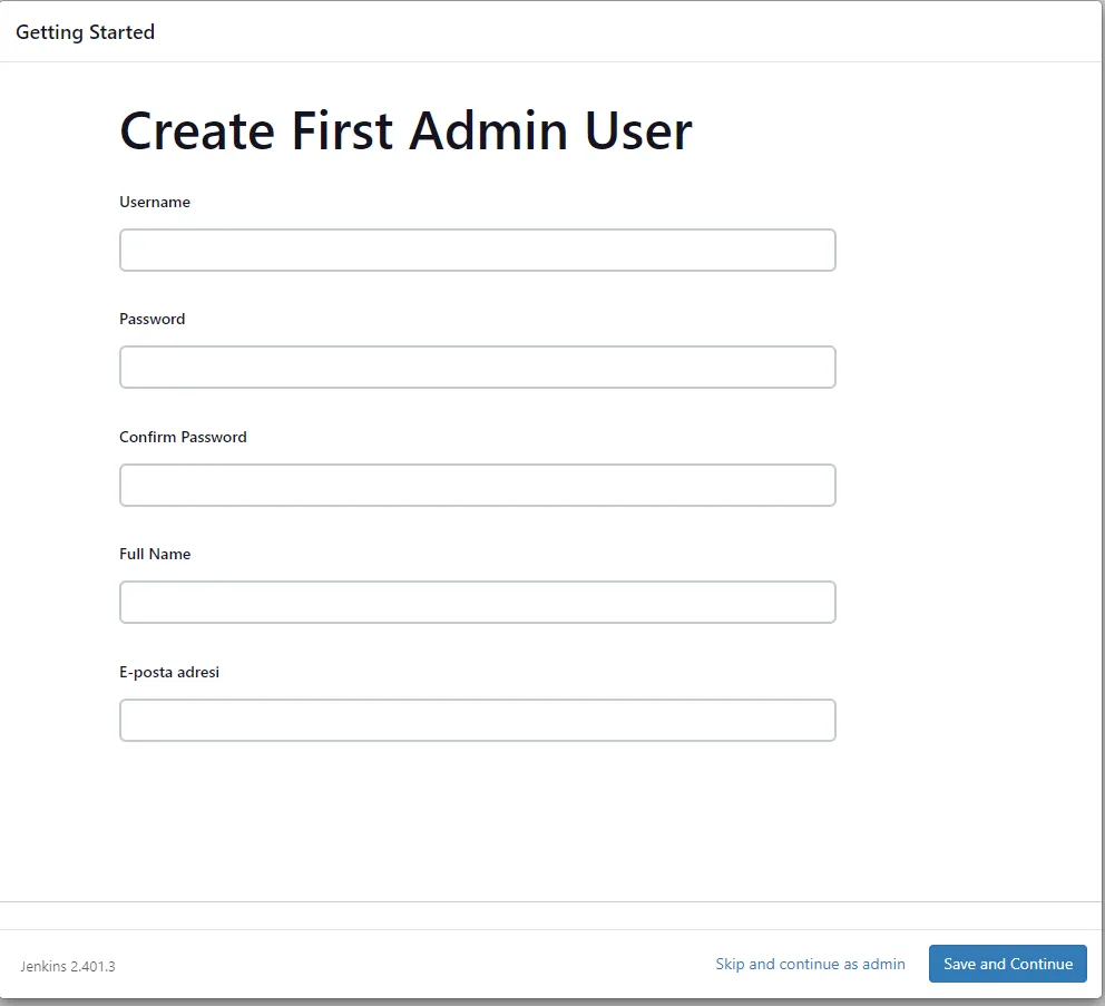이 단계에서는 Jenkins 웹 콘솔에 로그인할 수 있는 관리자 계정 ID, 비밀번호, 이름, 이메일 주소 등을 입력합니다.